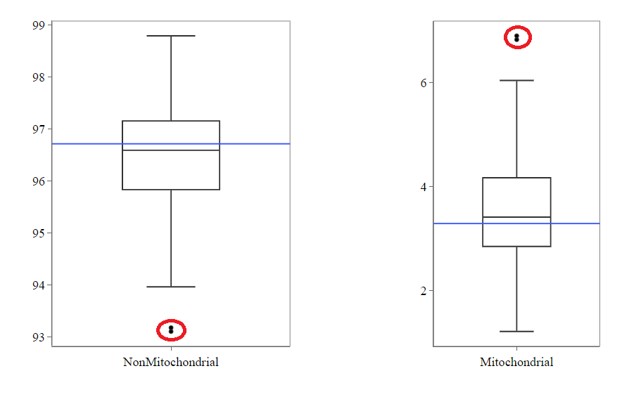 In our example, it may be useful to take out the two circled samples because they are clear outliers from the rest of the data.